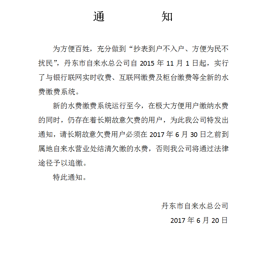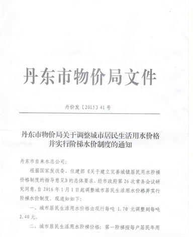 丹東市物價局關(guān)于調(diào)整城市居民生活用水價格并實行階梯水價制度的通知2017-06-15